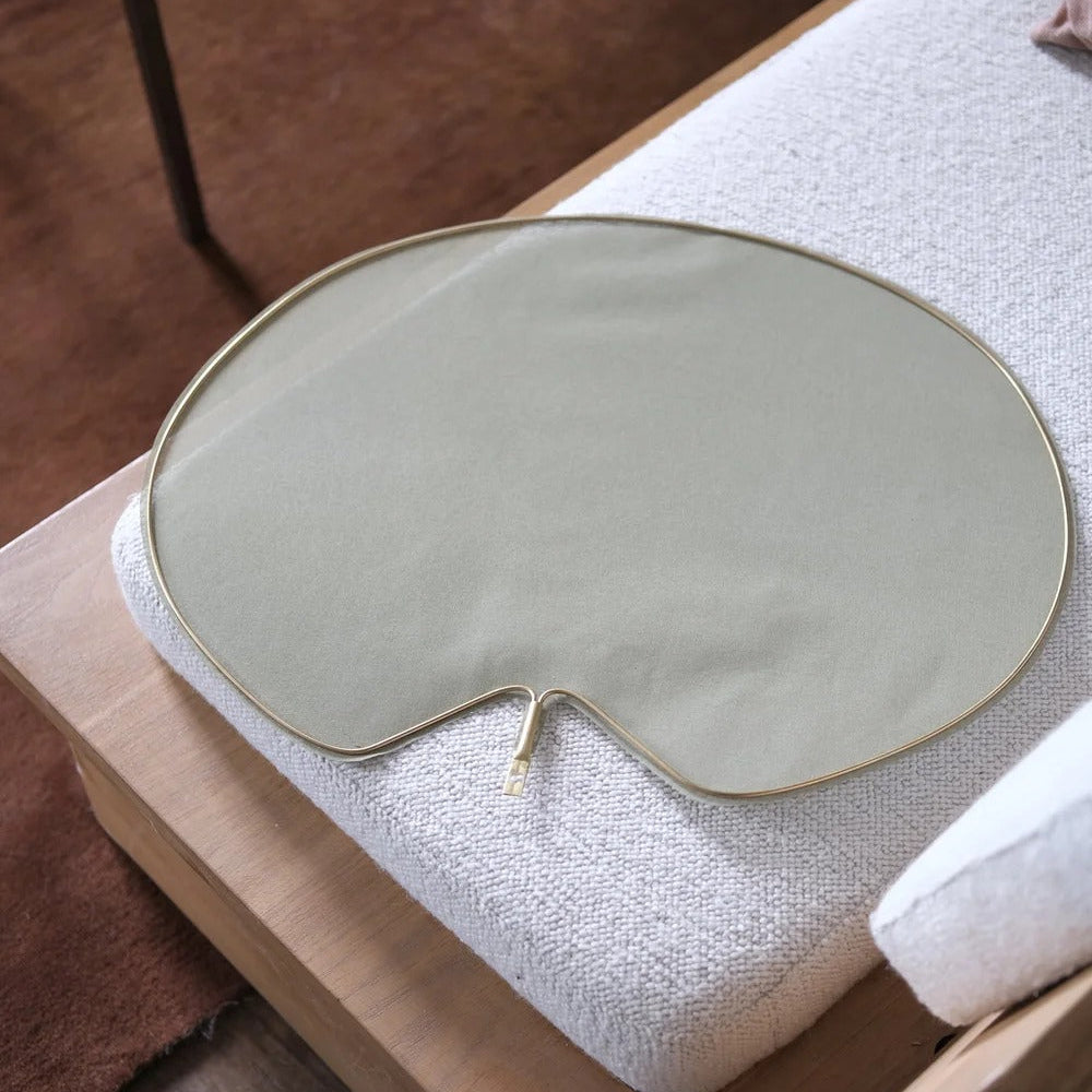 The Pensée pendant light embodies the natural elegance of the home. This organic light fixture, with a diameter of 85 cm, consists of three cotton blades and brass arches, creating a poetic and floral play of shadows.