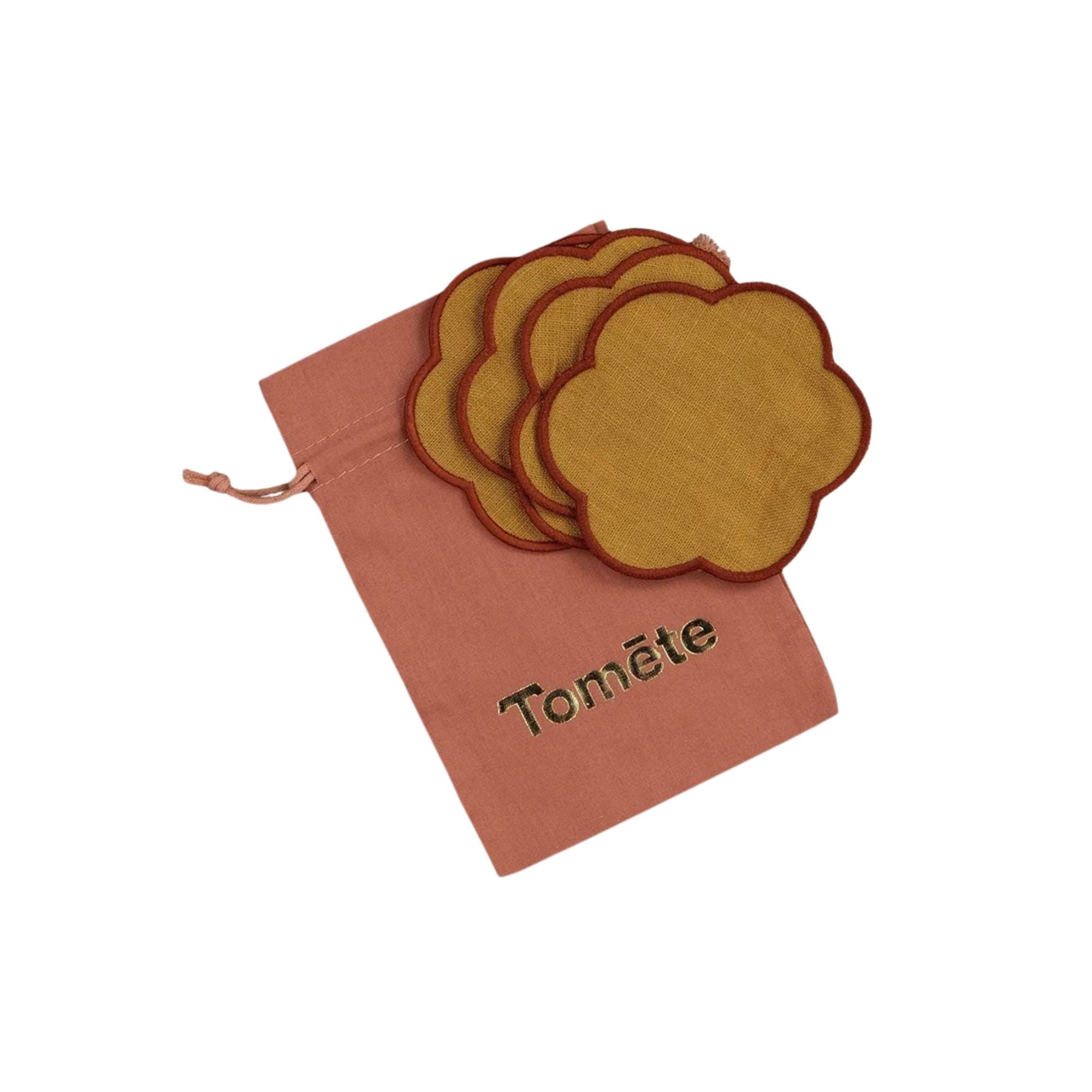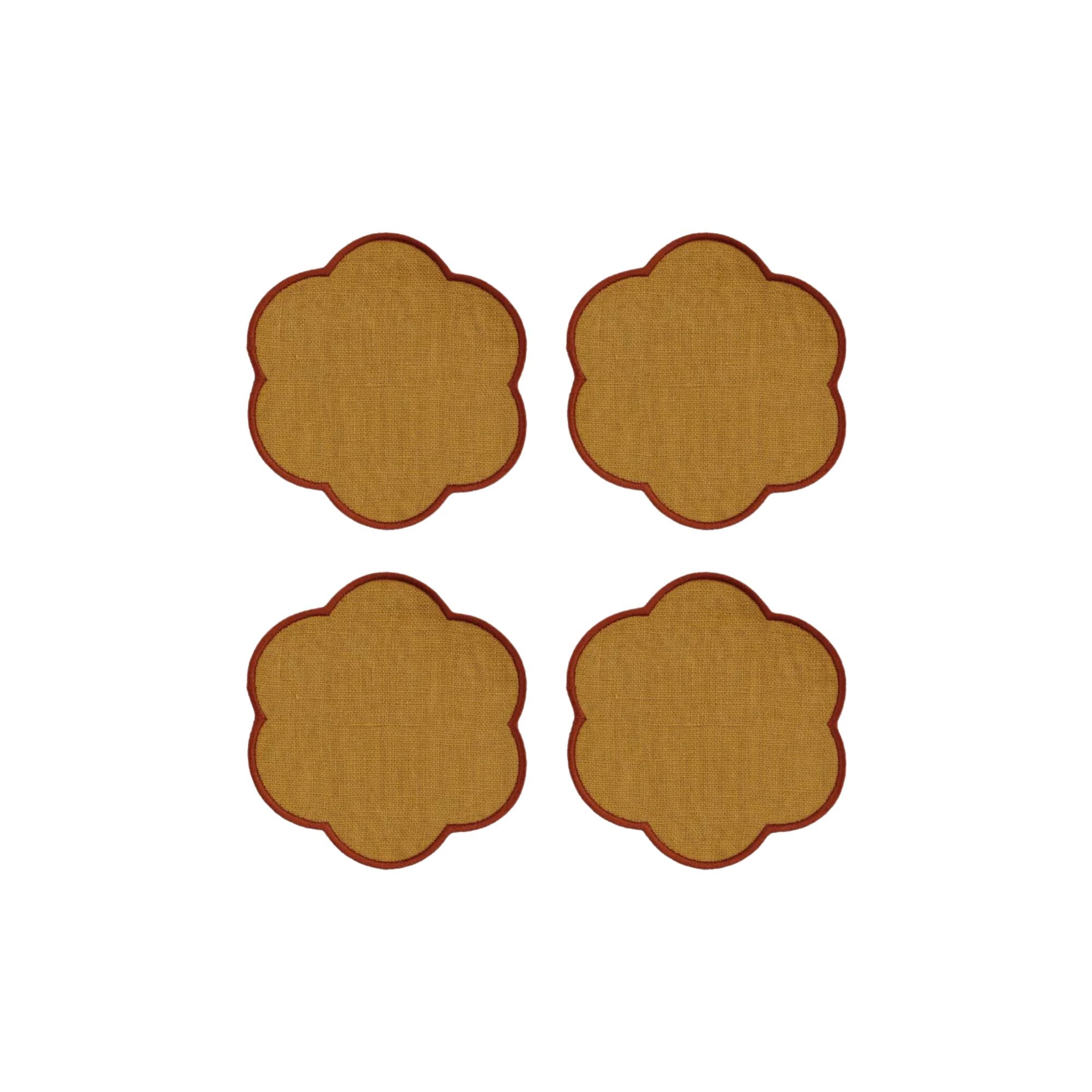Set of 4 scalloped linen coasters - Yellow ochre & Terracotta